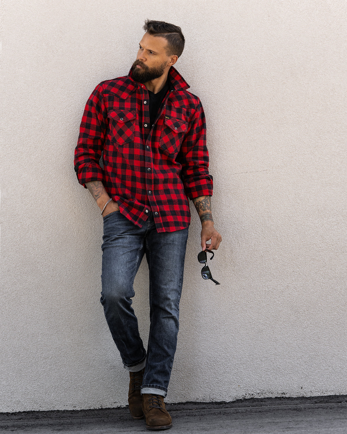 A heavyweight western flannel built from a 12oz 100% cotton. The exterior is single-brushed to keep the face clean, structured, and durable, while the interior is double-brushed for added warmth, softness, and all-day comfort.