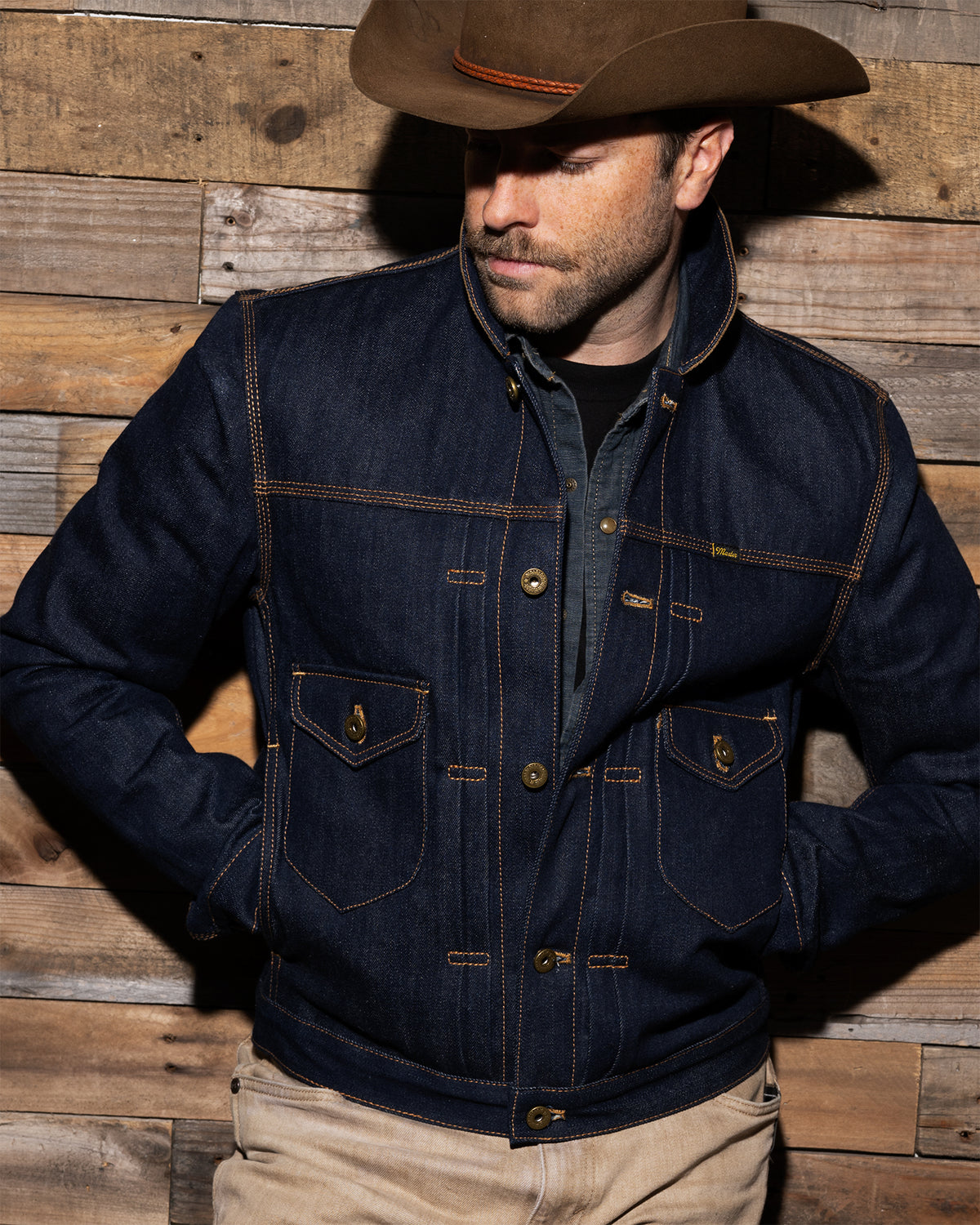 Construction: Triple-stitched seams, chain-stitched hems, and our proprietary zinc hardware ensure strength and longevity. Every jacket is built in our own workshop, where we oversee pattern drafting, sewing, and final inspection.