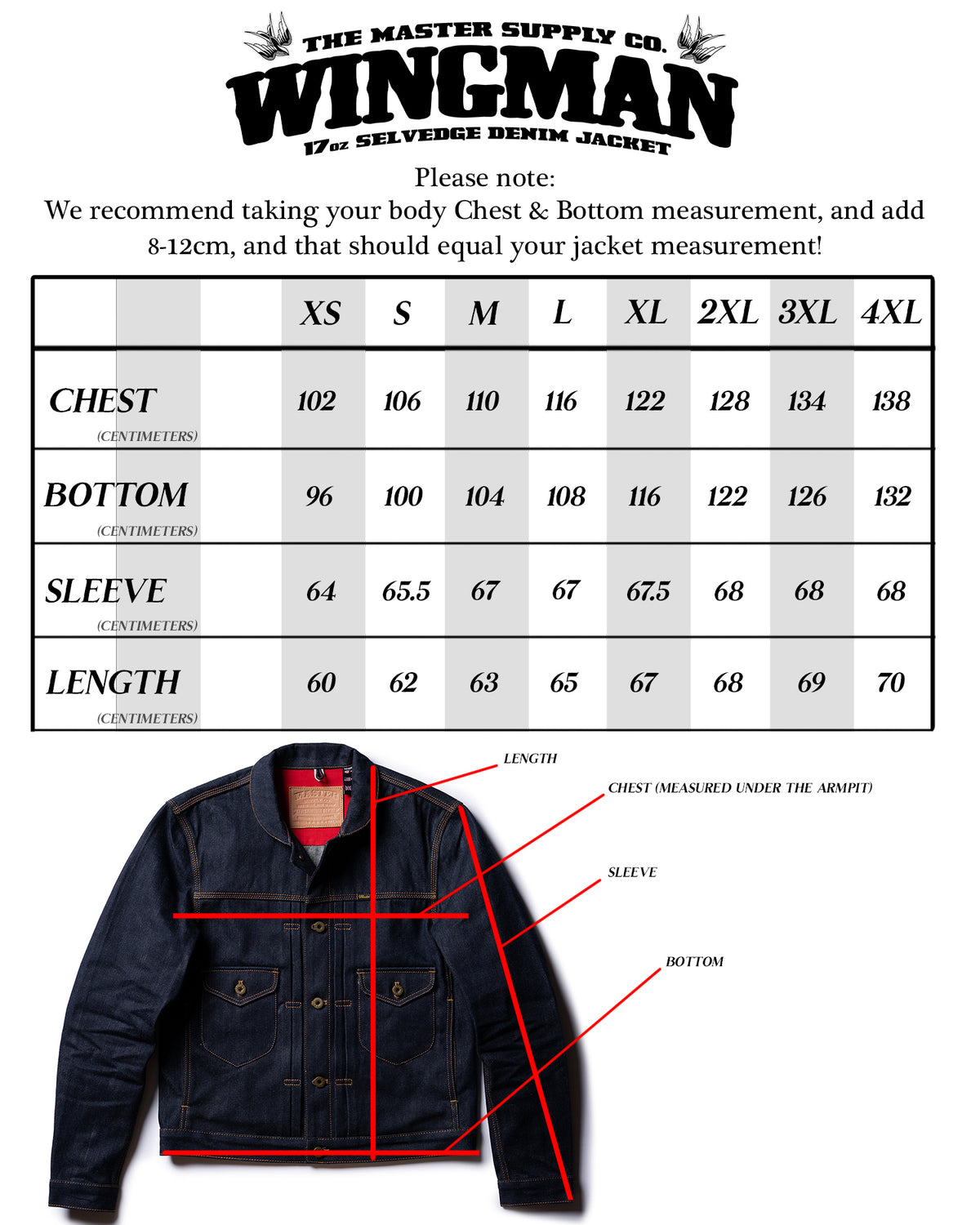 For the most accurate fit, we highly recommend having someone assist you when taking your body measurements. Accurate measurements are crucial to achieving the intended fit across all Master Supply Co. styles.