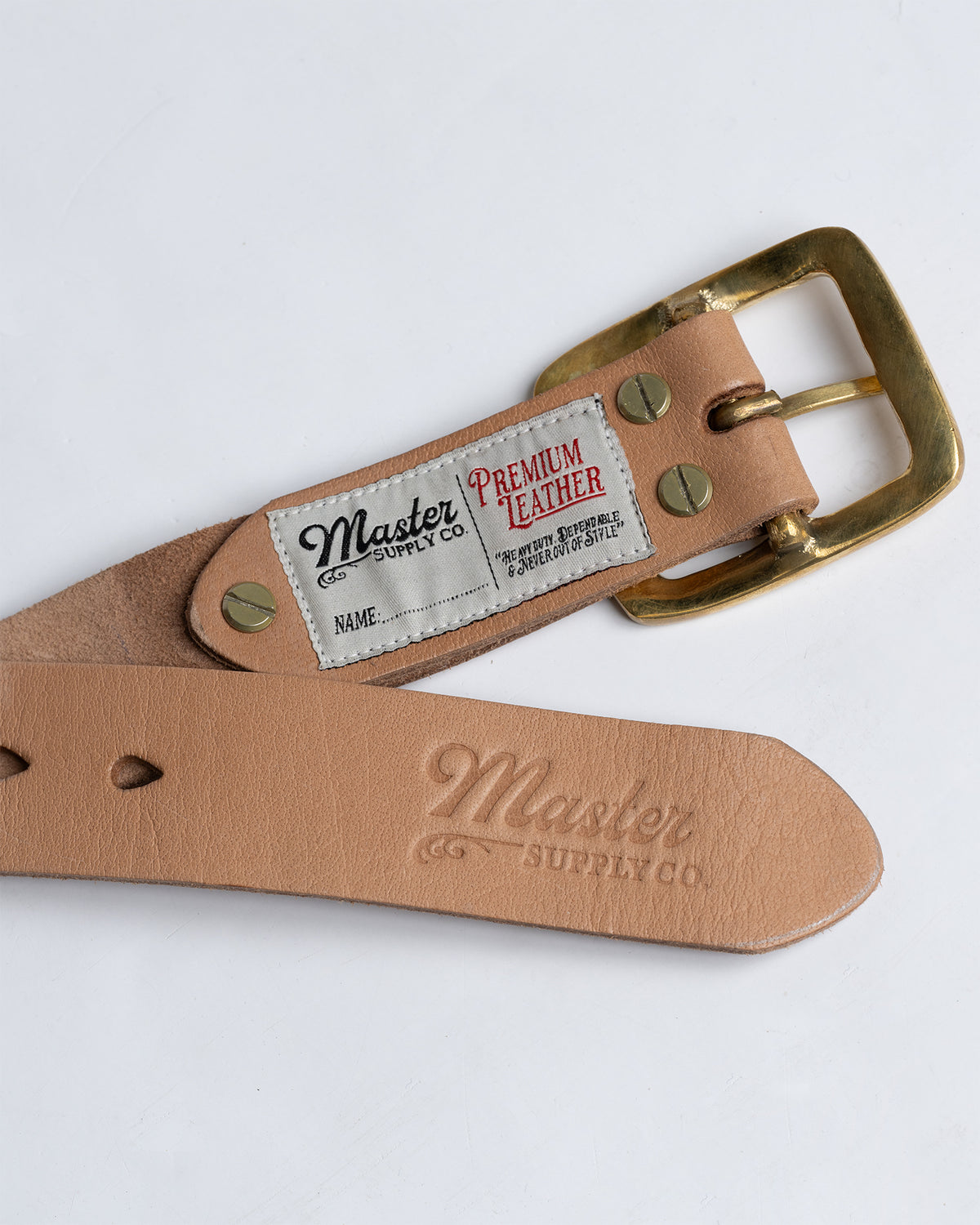 Fabricados para durar, nuestros cinturones de cuero Master Supply Co son una incorporación resistente y versátil a su colección. Estos cinturones, fabricados con cuero de búfalo curtido vegetal al 100 %, tienen un grosor robusto de 4,2 mm, lo que garantiza durabilidad y longevidad. Los herrajes de latón macizo están diseñados para durar, mientras que el grabado Master agrega una sutil marca.