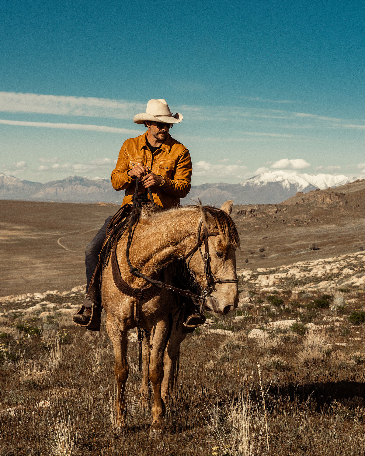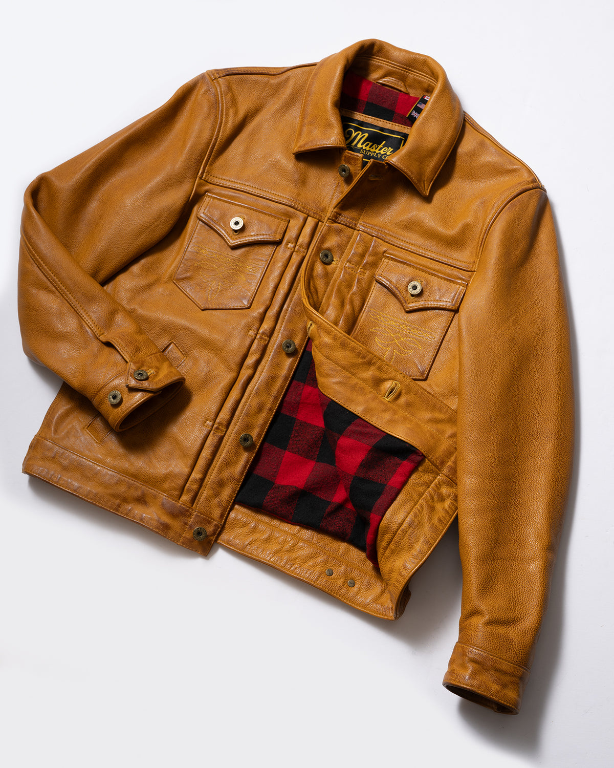 La chaqueta de cuero Goldrush cuenta con paneles frontales plisados ​​y un diseño de 4 bolsillos con detalles occidentales en los bolsillos delanteros con solapa en el pecho, combinando la herencia de una chaqueta de camionero de los años 60 con el estilo robusto de inspiración occidental de Master Supply Co.