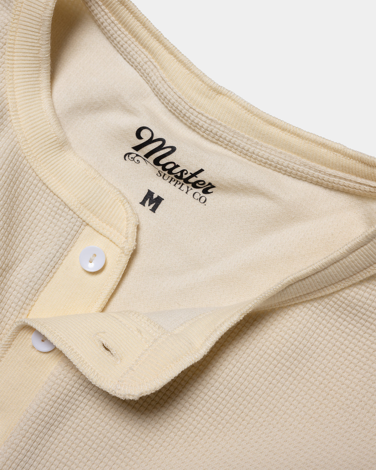 Presentamos nuestra camiseta henley de tejido gofrado MSCo. La hacemos simple, pensando en la calidad.